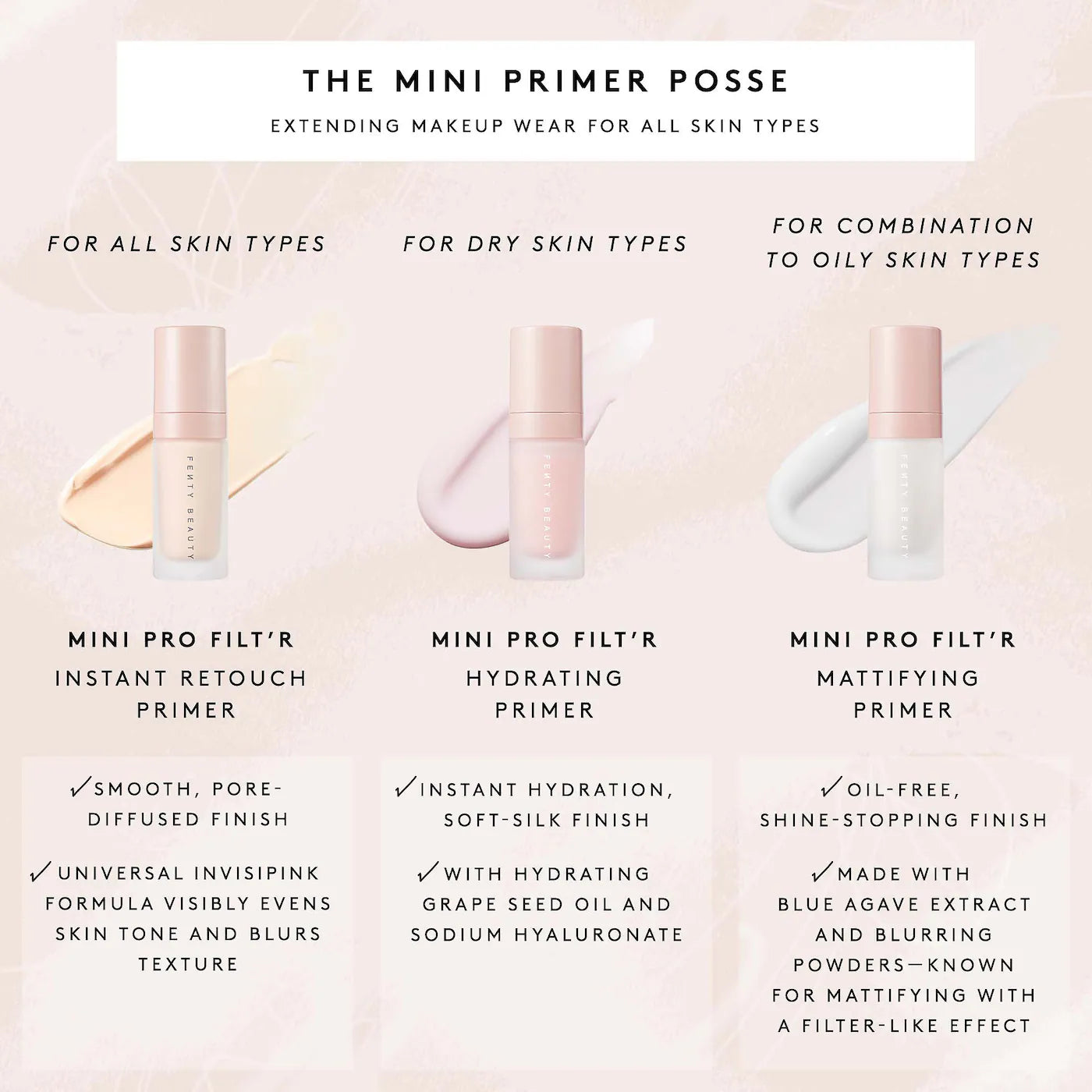 Qué más necesitas saber: Junto con la base Pro Filt'r (se vende por separado), esta imprimación sin aceite suaviza el aspecto de los poros, iguala visiblemente el tono y la textura de la piel y ayuda al maquillaje a sentirse cómodo todo el día. Con una textura ligera y amortiguada, la fórmula universal Invispink™ matifica la piel para un efecto de desenfoque similar a un filtro.